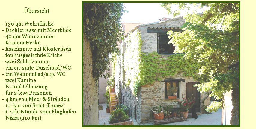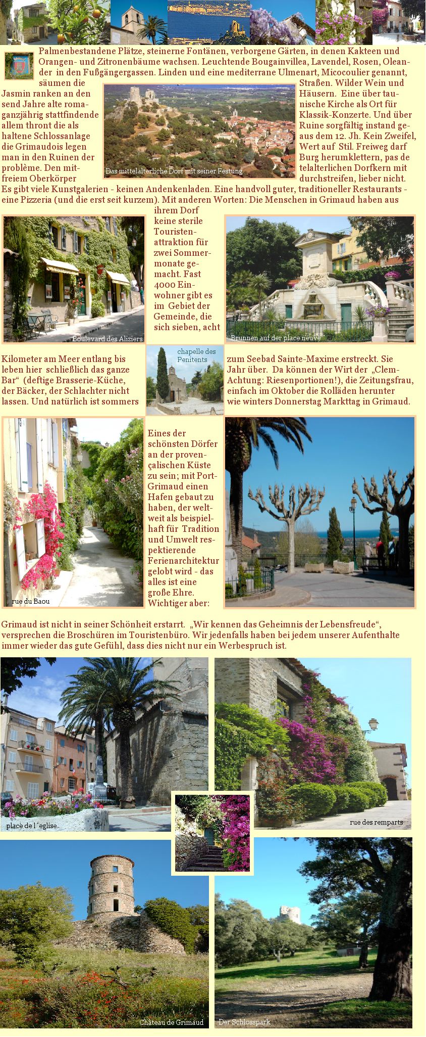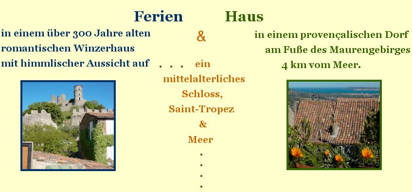 Auf diesen Seiten finden Sie viele Informationen zu den Themen: Ferienhaus Provence, Dorf Grimaud, Ferienhaus Frankreich mieten von privat, FerienhŠuser SŸdfrankreich, Ferienwohnungen Mittelmeer, Ferienhaus am Meer, Grimaud in der Provence.